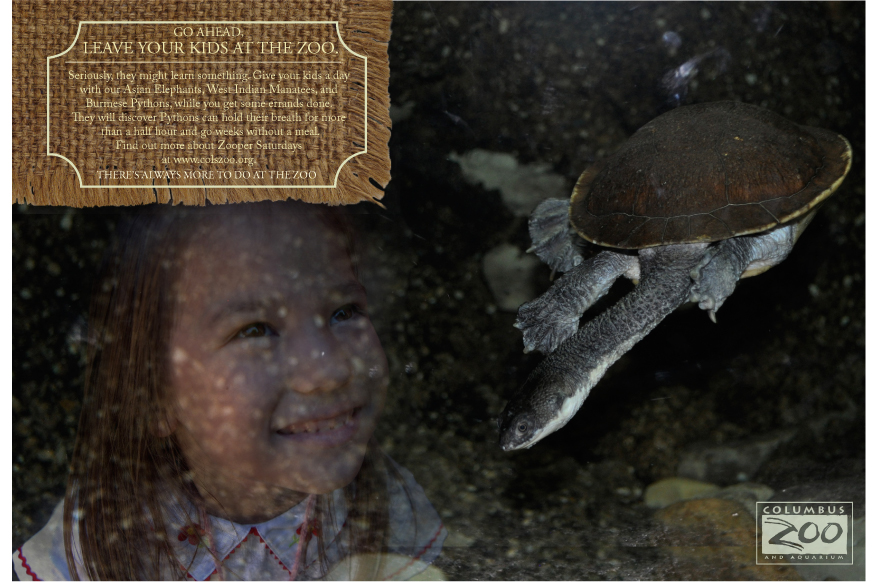 Ads aimed at promotiong the zoo's numerous eduactional classes and programs for children and families. Also created were a mailer to tell zoo news and an iPhone app useful for families visiting the zoo.