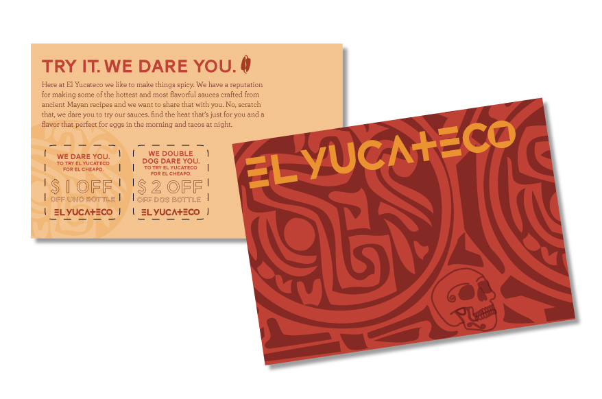 El Yucateco is a hot sauce brand with a great history but badly in need of a fresh look. Their Mayan recipes and Mexican heritage provided inspiration for the color palette and patterns. Snappy copy and bold but refined graphics played and important role in advertising and marketing the new look.